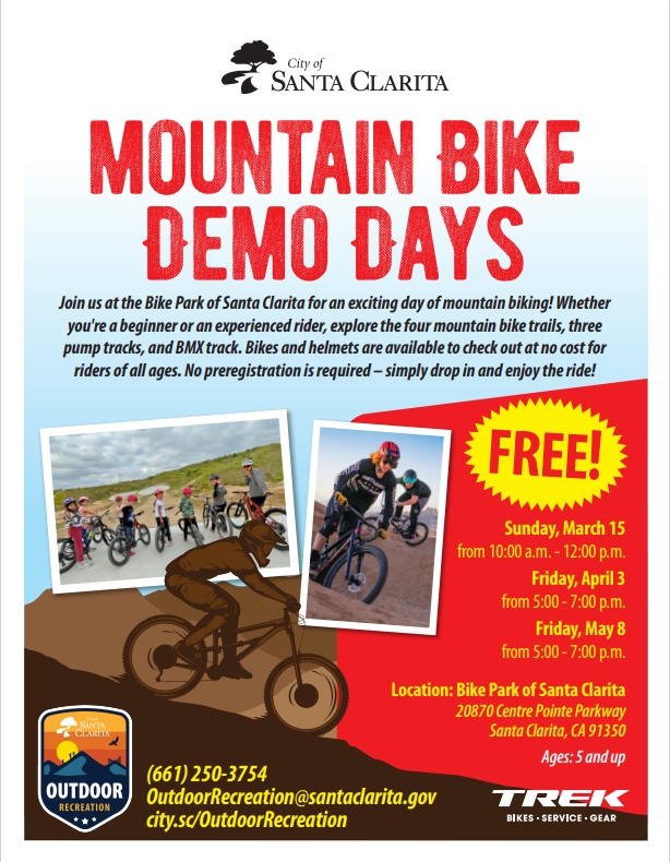 Join us at the Bike Park of Santa Clarita for an exciting day of mountain biking! Whether you’re a beginner or an experienced rider, explore the four mountain bike trails, three pump tracks, and BMX track. Bikes and helmets are available to check out at no cost for riders of all ages. No preregistration is required – simply drop in and enjoy the ride!